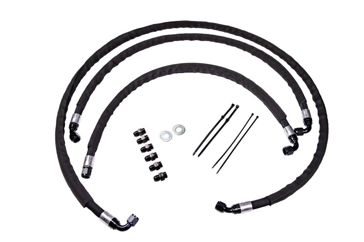 Replace your leaking transmission lines with our heavy duty, high flow, flexible transmission lines. This kit is a complete replacement transmission line kit for your L5P truck! With an increased diameter over stock and heavy duty hose wrap, these lines will increase overall flow and protect against future failures.