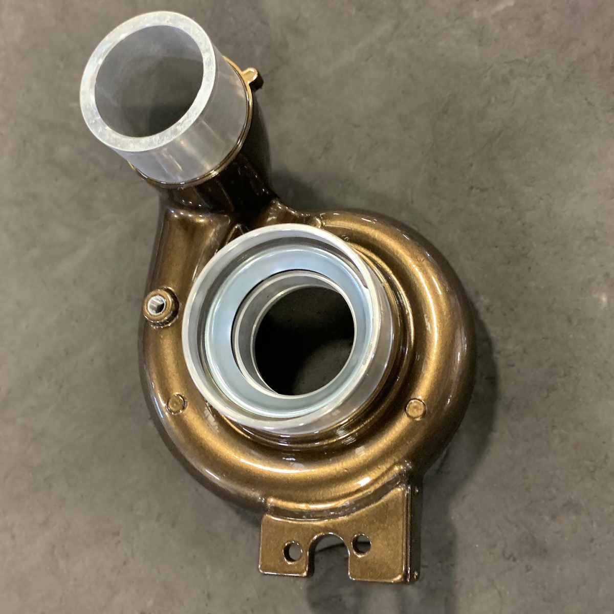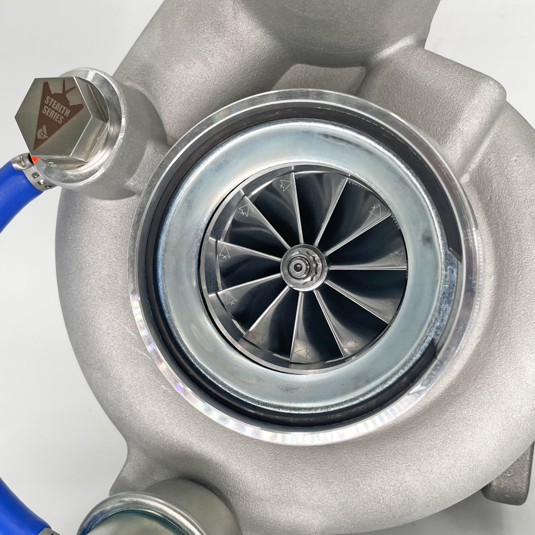 The Cummins Stealth Mach 1 64 is an upgraded, drop-in, replacement turbo for the 2003-2007, 5.9L Cummins. It is designed to bolt in and require nothing other than removing the factory turbo and dropping this one in its place. The turbo features a custom profile, 64mm (actual measurement 63.5mm) billet wheel perfectly mapped to a modified compressor cover and 65mm, 10-blade turbine inside the HE351's 9cm housing. The Cummins Stealth Mach 1 64 is one of the quickest spooling turbo's we have tested for the 5.9L Cummins. Even the most experienced enthusiast have a hard time telling the difference between a stock HE351 and a Stealth Mach 1 64 during light throttle, daily driving. This is directly tied to the tight exhaust housing and light weight turbine wheel. If you are going to daily drive your Cummins, consider a quick spool-up a "must have". Stock injector / built transmission trucks can expect an easy 100+ RWHP (Rear Wheel Horse Power) gain with no tune adjustment required. With the quick spool and improved top end power, this is a great turbo for towing performance. If you like use your truck for work and have to tow something the Stealth Mach 1 64 is up to the task. We have measured excellent EGT control without sacrificing performance. This charger is the perfect fit for those of you with future plans for a twin kit. Take your time and put the build together in stages. Start by upgrading the factory charger with an easy drop-in and build off it down the road. In a compound or twin kit we have many customers making 950-1,000HP! Of course those builds include a more extensive list of supporting modifications. Still it is nice to know there is a proven formula to follow. On the other hand, if you want street-able power out of a single turbo, we have tested that too. When really pushed, this turbo is capable of over 700RWHP! Calibrated Power tested 100% over Exergy Injectors with a 12mm Exergy Cp3 pump on a 2007 Cummins while sporting the Stealth 64. The truck produced a whopping 722RWHP and made one mean machine on the street! Supersedes models DM1552050202000, DM1682050202000