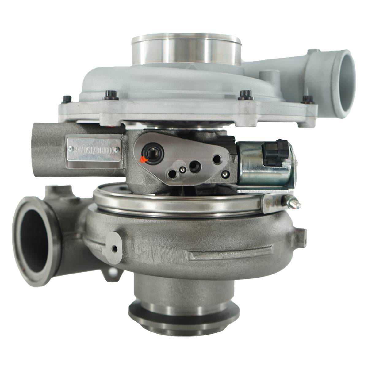 The turbine side innovation rivals the compressor side. This turbine dwarfs the factory turbine and the Garrett Powermax in every way. The turbine inducer is taller, allowing much higher flowing vanes that are actuated using a matched unison ring. The 6.0 Stealth Mach 2 features the largest turbine and vanes available in this frame. Increasing turbine size dramatically reduces drive pressure under heavy load, helping you achieve nearly a 1:1 drive to boost ratio under most operating conditions. Controlling drive pressure helps make more power and significantly lowers EGT's.