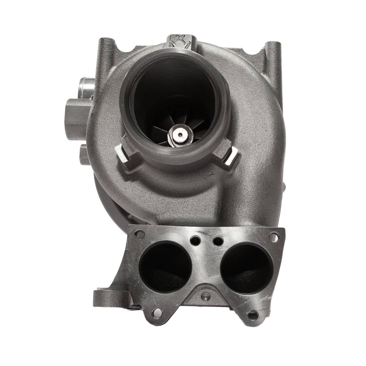 While upgrades found in the Mach V such as HFV (High Flow Vane technology) & the extra-large turbine wheel are not ideal for low end power or spool up, the improvement in flow that they offer can directly result in an increase in top-end performance. This increase in flow is also ideal for passing as much of the additional exhaust gas energy as possible through to the turbine of a secondary atmosphere charger in a compound (twin) turbo setup. Further helping to increase compound turbo setup efficiency and performance, this increased exhaust side flow from upgrades such as the HFV, upgraded turbine wheel, and ported exhaust housing can significantly help in managing EGTs while under load.