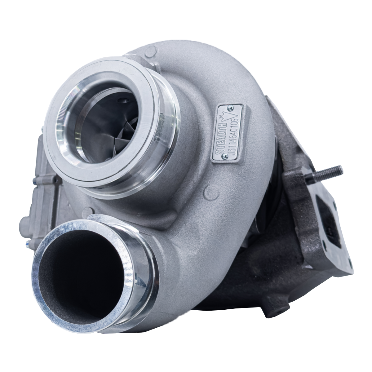 The HE300VG Stealth Mach 1 64 for 2019-2024 6.7L Cummins CME is the perfect balance of power, drivability, and reliability. With an upgraded compressor wheel, turbine, and variable geometry nozzle assembly this turbo has the ability to move 30% more air through it than stock. All while providing a better drive/boost pressure ratio than the stock charger. This means not only do you get more power, you also get an extremely fast spool up, comparable to that of the stock charger. If you tow or haul heavy loads on a regular basis this is the turbo for you. Quick spool up means taking off from stops is a breeze and the ability to retain your factory exhaust brake makes braking easier and saves your brake pads. Plus our upgraded turbine wheel and HFV technology help to lower EGTs which gives you even more confidence when towing a heavy load up a steep grade. To top it all off this turbo comes with a brand new genuine HE300vg Holset actuator to ensure proper operation.