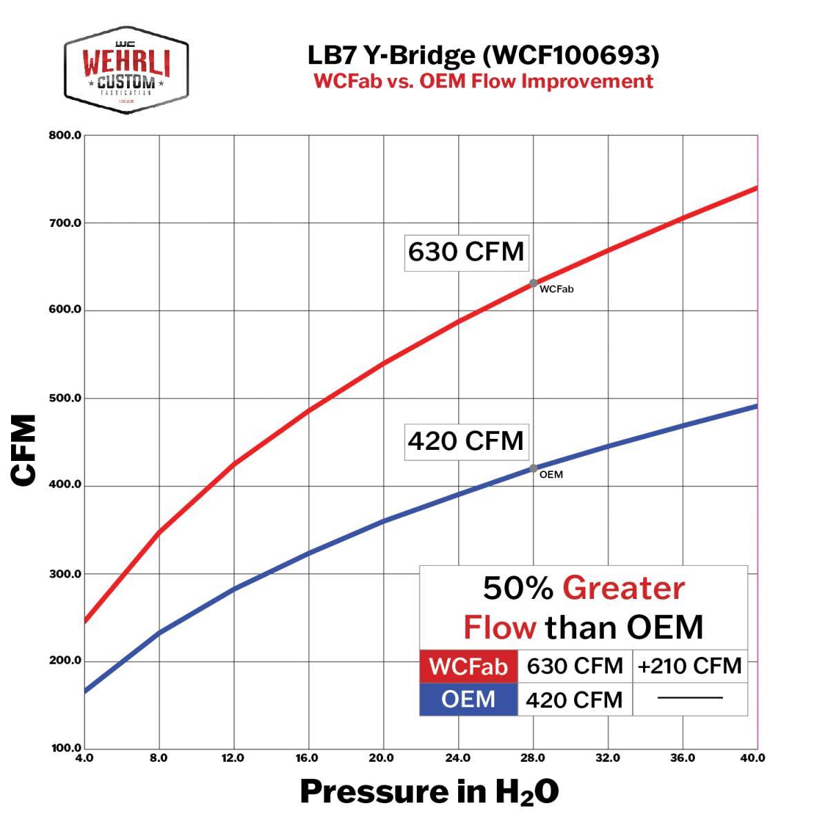 The only High Flow 3” Complete Y-Bridge kit on the market for your LB7 that is compatible with the factory IHI turbo and aftermarket drop in IHI style chargers! Replace the restrictive OEM Y-bridge and cold side intercooler pipe with this high flow 3” kit to increase throttle response and turbo spool up by creating a full 3" intake tract from the intercooler outlet to the engine. Eliminates the angled OEM intercooler boots that are prone for failure. Includes FPRV Block off kit to allow proper clearance to larger diameter Y-bridge.