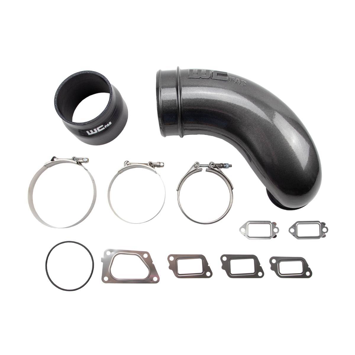 The WCFab LML 4.8 in. High Flow Cast Aluminum intake horn replaces the restrictive OEM plastic inlet to provide increased airflow to your turbo for improved performance and throttle response. Includes port for PCV connection. Eliminates resonator for improved appearance and more aggressive turbo and engine sound. Designed to complement our Stage 1 LML Intake Kits and Stage 1 High Flow Bundle Kits. Powder coated in the custom color of your choice.