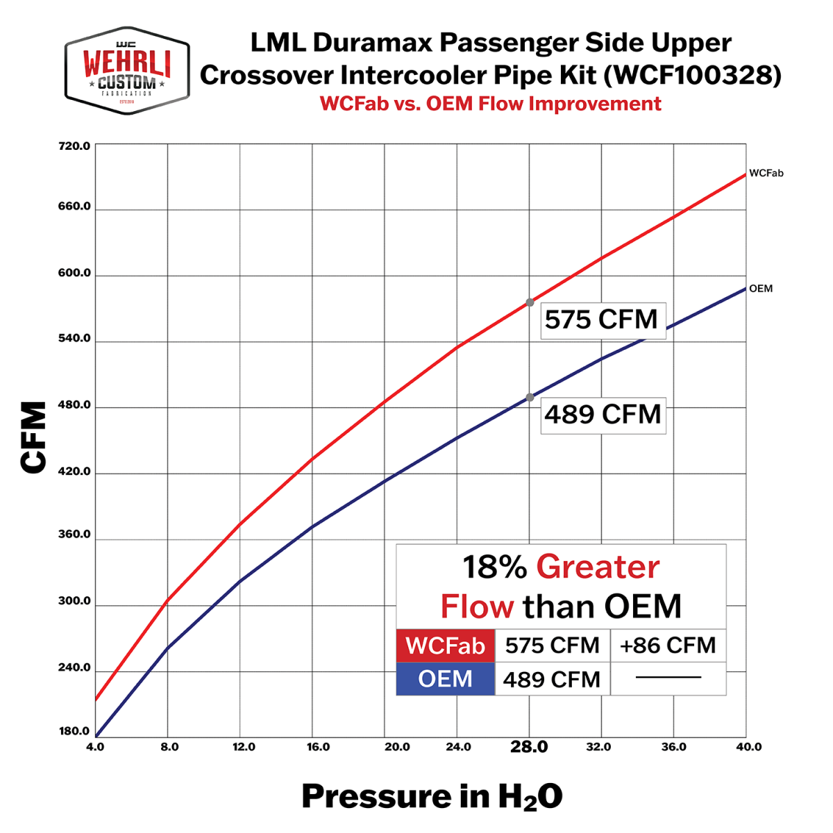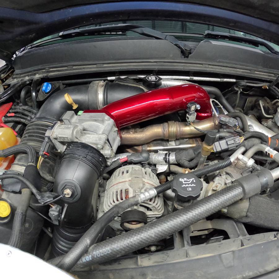 The 3" High Flow Passenger Side Upper Crossover Intercooler Pipe for 2011-2016 LML Duramax provides a 20% increase in size over the OEM part allowing for less restriction in airflow and an increase in efficiency and turbo spool up. Eliminates resonator for improved appearance and more aggressive turbo and engine sound. For use with the OEM Y-Bridge and connects to the factory throttle valve and grid heater. Finished in your choice of custom powder colors. This pipe is compatible with stock trucks requiring no additional modifications, upgrades, or tuning for installation.