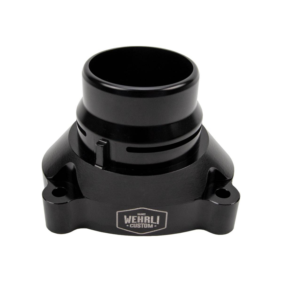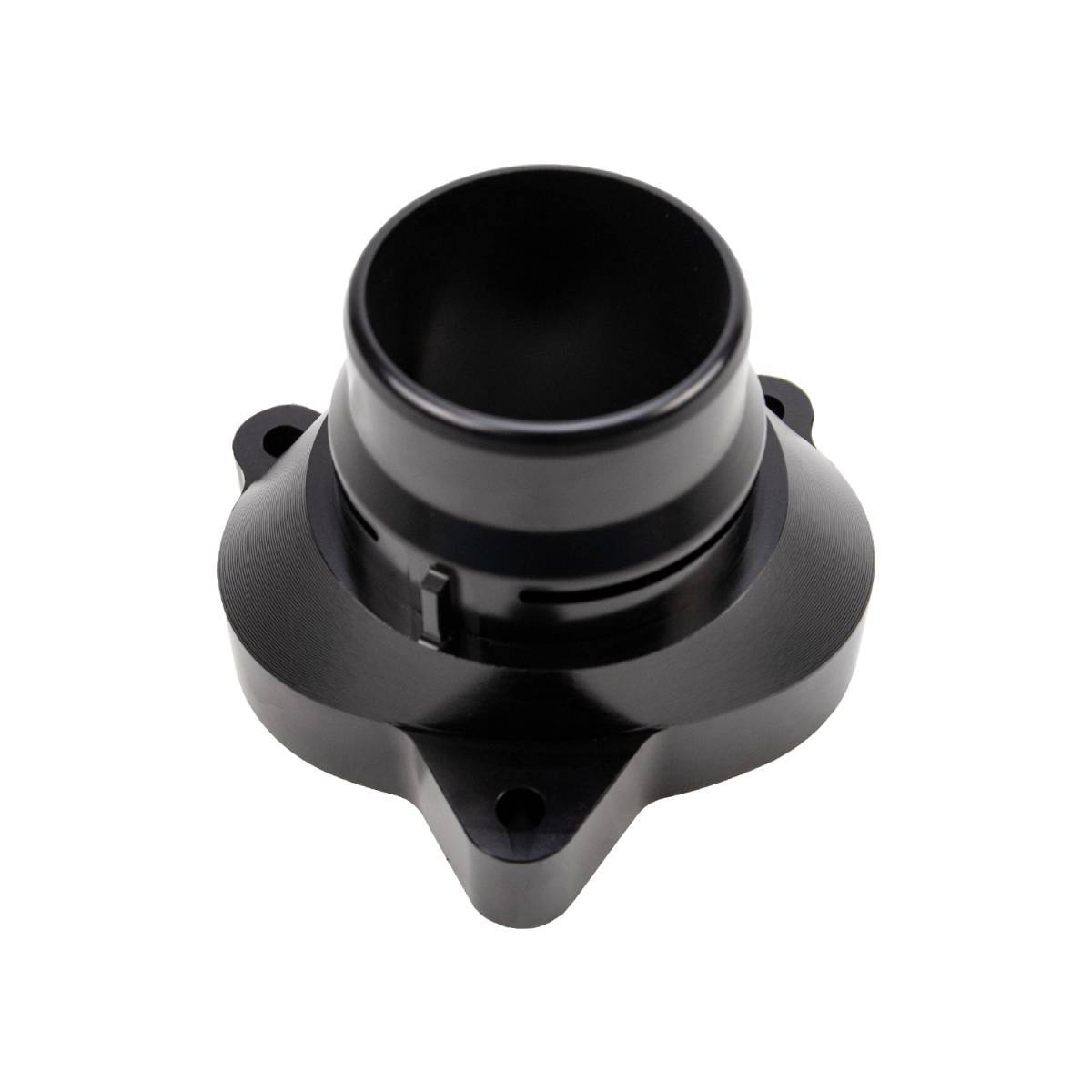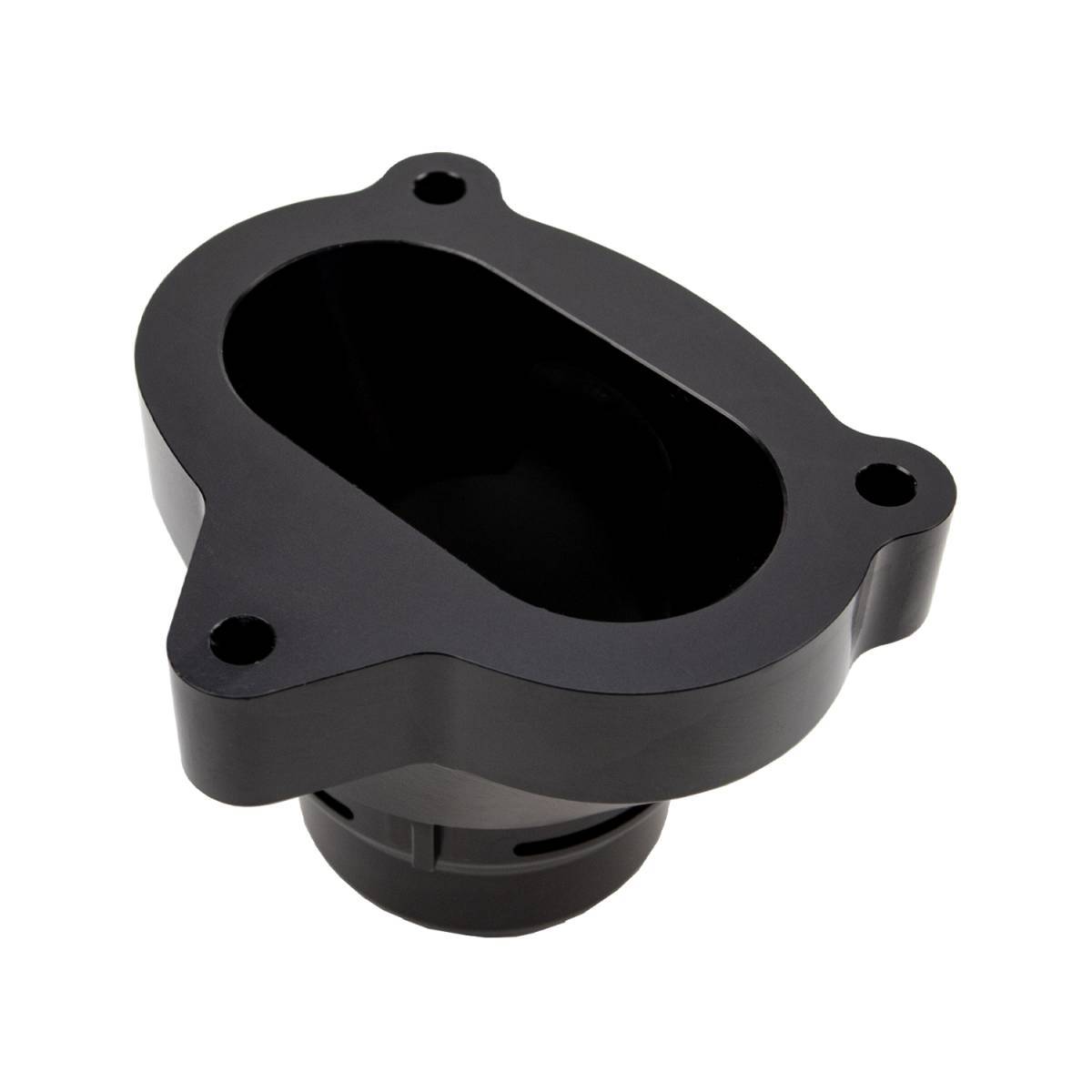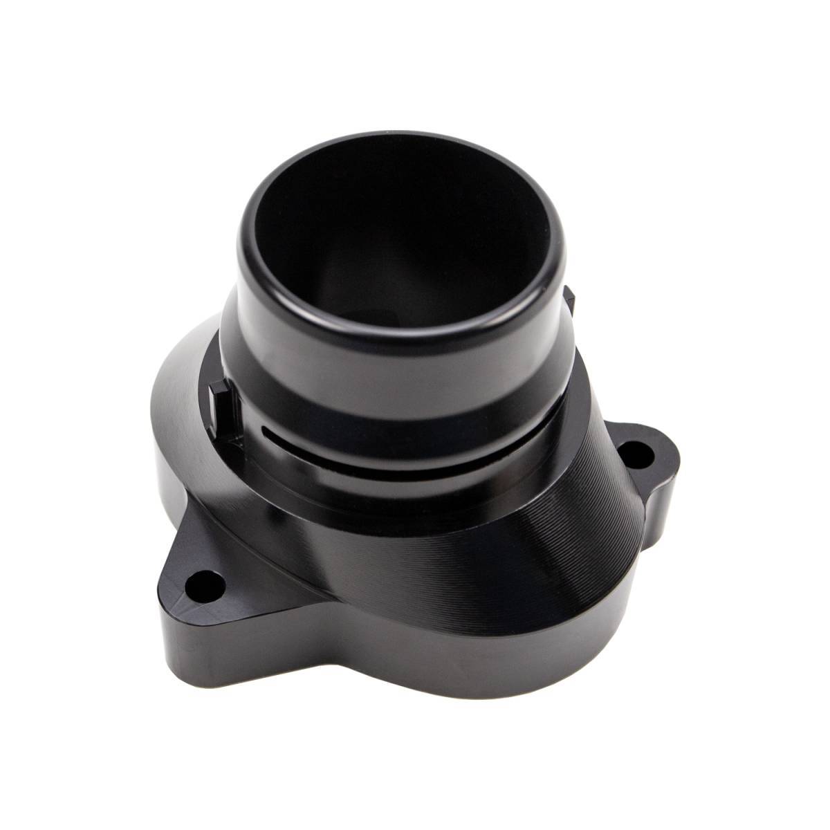 This Billet Aluminum Thermostat Housing for the 2011-2025 6.7L Ford Power Stroke diesel engine used in the F250-F750 Super Duty trucks is a direct replacement upgrade for the failure prone plastic OEM part. Precision CNC machined in our facility in DeKalb, IL USA from 6061 T6 Billet Aluminum. Black Anodized finish complements other upgrades on your truck like our Intake Kit, Intercooler Piping, Upper Coolant Pipe, and Coolant Tanks.