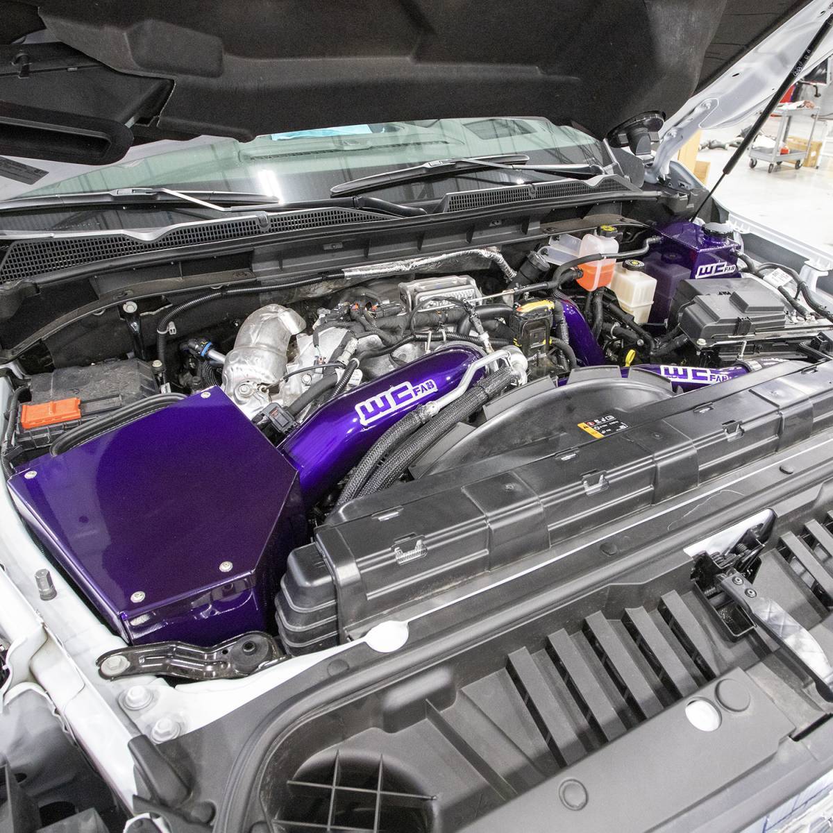 After the turbo, our Stage 3 kit also upgrades the restricted 2.5 in. diameter driver (hot) side intercooler pipe and leak-prone plastic / rubber passenger (cold) side pipe with WCFab's heavy duty 3 in. diameter 1-piece Driver (Hot) Side and 3.5 in. diameter Passenger (Cold) Side L5P Intercooler Pipes. Made in the USA from high strength, heavy duty 14 ga. aluminum tube with smooth, aerodynamic mandrel bends for increased durability and optimized flow.