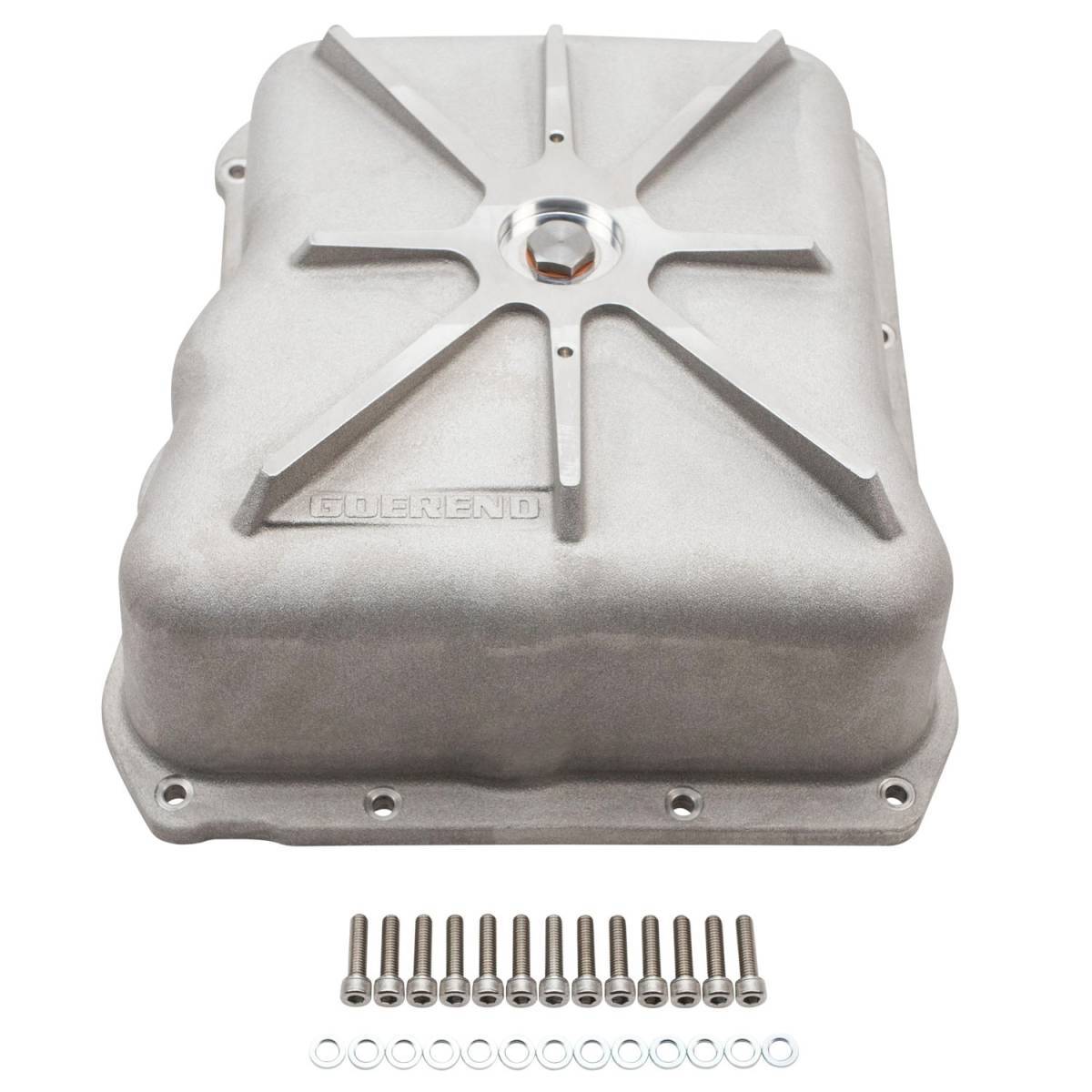 Manufactured by Goerend Transmission, this high capacity transmission pan is the perfect bonus to your built or stock Allison 1000 automatic. The pan is constructed of lightweight, cast-aluminum for efficient heat dissipation, durability, and holds approximately 3 more quarts of fluid than a stock pan. The patented, sloped floor design results in 100% drainage, while the magnetic drain plug catches and eliminates debris from circulating throughout the transmission. The copper sealing ring provides a leak-free seal. A billet-aluminum filter lock is included, as well as a new transmission filter. The drain plug also uses a 1 inch socket for easy removal & is designed NOT TO STRIP!